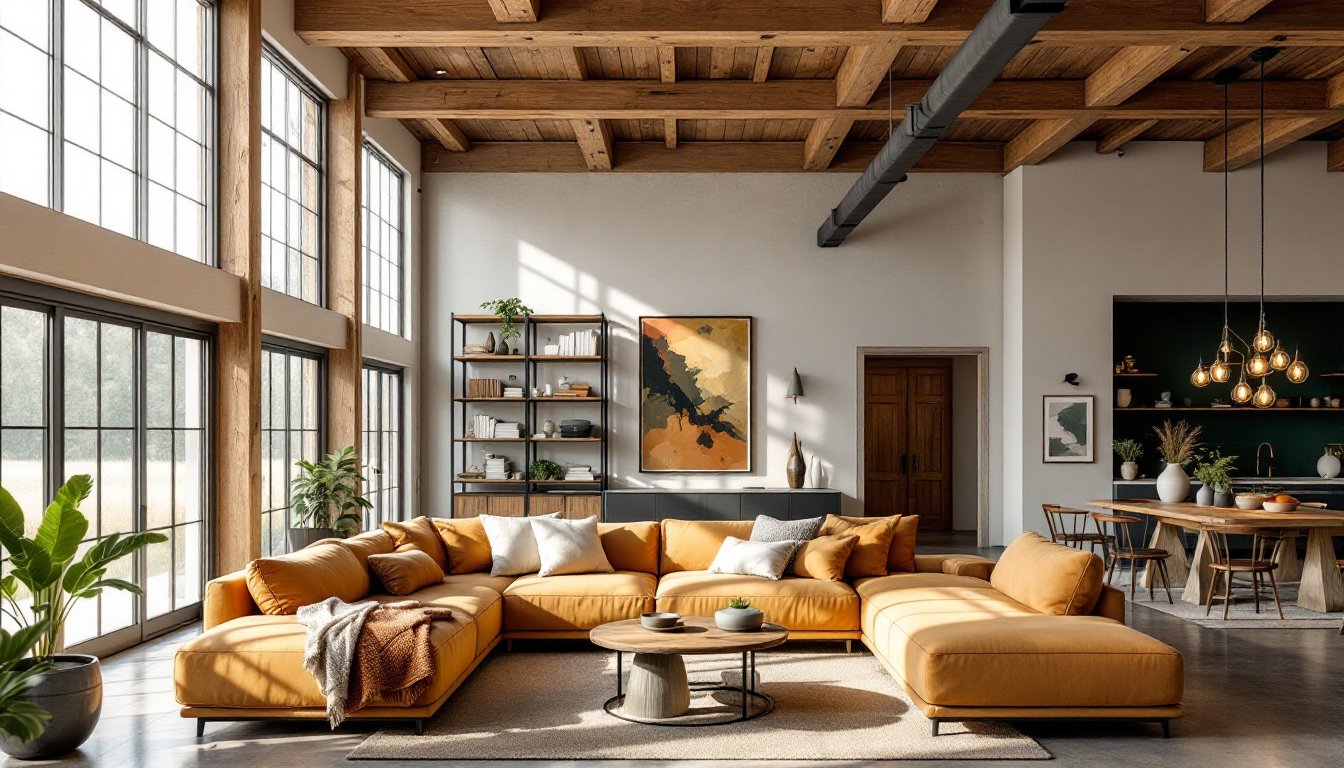 Start with your structural elements as your design anchor. If you have exposed wooden beams, embrace them rather than hide them. Pair them with warm metal finishes (aged brass or blackened steel) rather than shiny chrome. Layer in softness through upholstery: think chunky knit throws, leather chairs, and linen curtains. A large area rug in a neutral tone grounds the space and adds acoustic warmth, concrete and brick are unforgiving for sound.